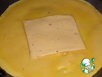 Таким образом выпекаем еще 4 блина. (5 ломтиков сыра - 5 блинов с начинкой). Всего из данных ингредиентов получилось 7 блинчиков : 5 - с начинкой, 2 - простые. |