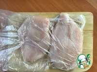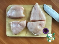 Затем разрезать каждое филе поперек на 2 части. |