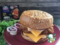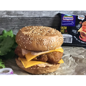 Сверху поместить дополнительно кольца лука, ломтики сыра и верхние части булочек. Сразу подать с оставшимся соусом. |