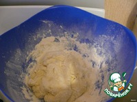 В кефир добавляем соду, затем воду, сахар и муку. Замешиваем тесто. Оно должно отлипать от рук, но не быть таким крутым, как на пельмени. Муки может понадобиться больше. |
