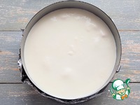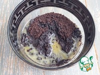 Утрамбовать основу из печенья так, чтобы она полностью покрыла всё дно формы для выпечки (у меня кольцо для выпечки 18 см.). |