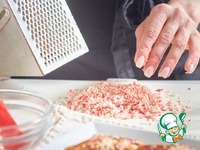 Для начинки натереть крабовые палочки на мелкой терке. |