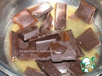 В кастрюльку налейте сироп, поставьте на маленький огонь (или на водяную баню), добавьте поломанный на кусочки шоколад. |