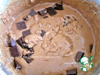 Аккуратно влейте кипяток, постоянно помешивая, затем всыпьте шоколадные капли (или кусочки). |