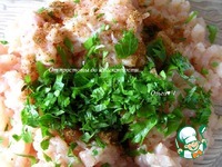 Индейку мелко нарежьте (я измельчила с помощью мясорубки и насадки с самыми крупными отверстиями), посолите, поперчите, добавьте мелко нарезанные травы, перемешайте. |
