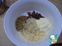 Добавить майонез и горчицу, поперчить и перемешать. |