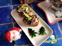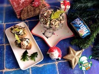 Начиняем "стаканчики" из багета салатом с "горкой". Украшаем сверху по своему вкусу. Я вставлю листики сельдерея и из огурца вырежу ёлочки ножом. |