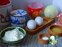 Тунец (1,5 -2 банки) освободить от жидкости, смешать с жареным луком. Посолить по вкусу. |
