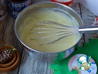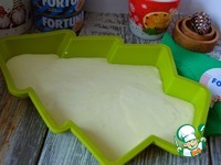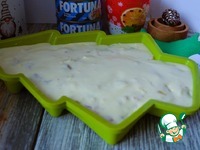 Приготовить форму, 1-1,5 л.. Вылить в неё чуть больше половины теста. |