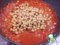 К тунцу и овощам выложить нут (предварительно слив с него жидкость). Готовить все вместе еще 5 минут. |