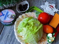 Выложить на блюдо для подачи. Сыр нарезать кубиками, маслины колечками. Разложить на овощную массу. |