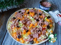 Помидоры вымыть, обсушить, нарезать тонкими полуколечками. Добавить майонез, слить с тунца масло. Перемешать. |