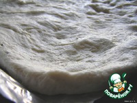 Смазать маслом 2 противня (я застелила фольгой и ее смазала маслом), выложить на них тесто и распластать его руками, стараясь не порвать пузыри.