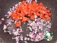 Помидоры нарезать мелкими кубиками, выложить к луку. Обжарить 5 минуты. |