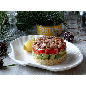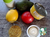 Описание: Уже давно не секрет, что авокадо прекрасно сочетается с рыбой, а ещё и с томатами. Я решила, а почему бы не сделать салат с использованием крупы и этими ингредиентами. На рис я наверное так и не решусь, взяла свой обожаемый булгур. Получилось превосходно, сама не ожидала)). Салат, с первой пробы даёт ощущение свежести и лёгкости. Все компоненты прекрасно "сошлись" и отлично дополнили друг друга. Можно заправить салат майонезом, которого много и не надо или сдобрить слои маслом, тоже будет превосходно. Отличный вариант для праздничного застолья!!