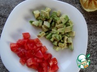 Авокадо нарезать кубиками, щедро полить соком лимона, немного подсолить и перемешать. Лимон не даст авокадо потемнеть и в рыбном салате он будет отлично "звучать". |