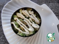 Затем выложить авокадо и немного майонеза. |