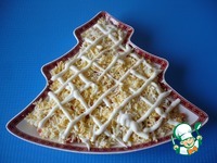Выложите салат слоями в следующей последовательности: первый слой выкладываем тунец с луком и делаем сверху сеточку из майонеза. |