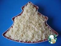 Четвертый слой - выложите натертый на мелкой терке твердый сыр. |