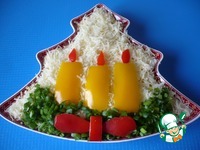 Вокруг "свечей"посыпьте мелко нарезанным зеленым луком. Салат можно подавать к столу. Приятного аппетита! |