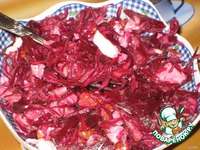 Из краснокочанной капусты и свеклы, для сытости немного добавим копченую грудку, для свежести и пикантности – мандарин. Все вместе получается великолепное сочетание, вкусно и сытно, ведь капуста надолго оставляет чувство сытости и при этом, не забывает сжигать жиры )))