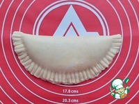 Сложить круг пополам, защипать края, например, с помощью вилки. |