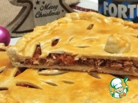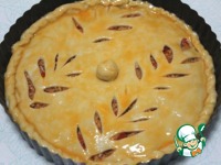На тесто начинку и накрыть второй частью теста. Сделать дырочку по середине (я сделала надрезы и дырочку не стала делать) Смазать желтком. Духовка разогрета на 180 Выпекать 25-30 минут. |
