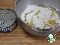 В муку добавить щепотку соли и щепотку сахара, влить 50 мл оливкового масла. |