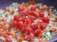 Добавить порезанные томаты, щепотку соли и сахара. Потушить - не должно быть сухо! Снять с огня. |