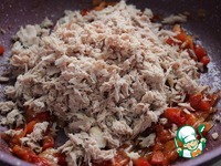 Тунец обсушить, размять и добавить к горячим овощам. Перемешать и остудить. Откорректировать на вкус. |