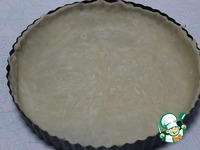 Тесто поделить на две части и тонко раскатать. Форму чуть смазать маслом. Выложить одну часть теста. |