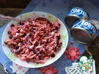Описание: Новое прочтение всеми любимого винегрета. С острой квашеной чимчи и тунцом. Сытно, подойдёт как закуска на праздничный стол или полноценный ужин. Рекомендую.