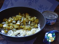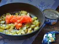 Добавить пережарку и тунец в кастрюлю, варить 3 минуты, посолить. |