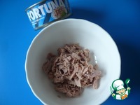 В миску выложите полосатый рубленный тунец ТМ FORTUNA (слейте жидкость). |