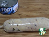 Если необходимо, то можно отправить все вместе в свч на несколько секунд. Выложить на пищевую пленку и завернуть рулетом. Убрать в холодильник, чтобы остыл. |