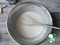 Замешайте тесто: взбейте яйцо с солью и сахаром, добавьте молоко и муку. Тщательно все перемешайте. |