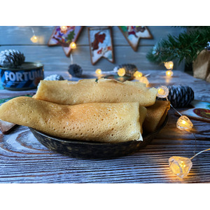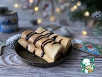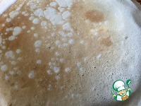 Выпекайте тонкие блинчики. Из этого количества теста получается 8 штук, у меня сковорода диаметром 24 см. |