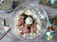 Добавьте филе тунца и каперсы. Пробейте блендером, чтобы остались кусочки тунца и кусочки каперсов, в паштет сбивать не надо. Текстура у риета должна быть фактурной. |