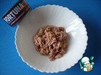 Для приготовления салата я использовала консервы рыбные тунца кусочками с ароматом копчения ТМ FORTUNA. В миску выложите тунца (слегка размяв его) вместе с жидкостью. |