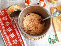 На сковороду наливаем масло и золотим порезанный порей. Отправляем порей и тунец вместе с маслом к спагетти и вымешиваем хорошо, чтобы добавки распределились по всей пасте. |