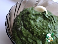 В блендере измельчить зелёный лук, чеснок, красный молотый перец, остывший шпинат и йогурт до однородности. Соль, перец добавить по вкусу. |