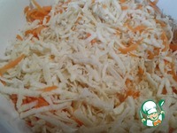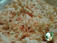 Тщательно перемешиваю. Возможно придётся добавлять майонез. Кстати, можете сделать майонез пополам со сметаной. |