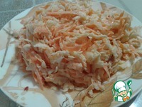 Морковь чищу и натираю на крупной тёрке в глубокую миску. |