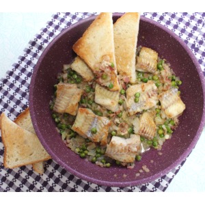 Выложить кусочки рыбы сверху и немного прогреть. Подавать с тостами. |