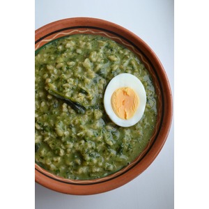Описание: Сытная овсяная каша, сваренная на курином бульоне, с добавлением шпината.