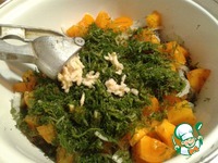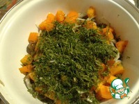 Единственное, что я дополнила, запекаю с большим количесвом пряностей: чеснок целыми зубками+зелень сельдерея+зелень петрушки+веточки чабреца/тимьяна (у меня свой растёт), накрываю всё это на противне фольгой и запекаю до готовности. (Без приправ, он пресный и не для салата, а разве что для икры). Далее его остужала, очистила от шкурки и порубила на крупные кубики и!! вместе с приправами!! замораживала. Кусками мне понравилось больше, если надо на салат!