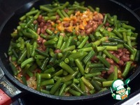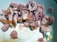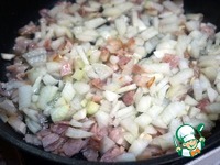 В разогретой сковороде обжарить бекон с ложкой растительного масла. |