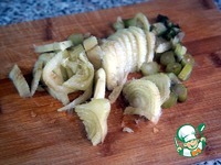 Фенхель порезать – не так, как у меня, так тоже можно, но лучше как можно мельче. |