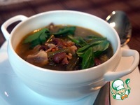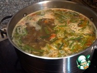 Описание: Для этого супчика я взял три вида фасоли – красную, белую и стручковую. А в качестве мясного ингредиента использовал баранью шею. Бульон вышел очень наваристым. Варить баранину лучше подольше – часа два с половиной, а то и все три. Так, чтобы мясо свободно отделялось от костей. Фасоль белую и красную рекомендуется замачивать порознь, но я пренебрег – замочил вместе. Кажется, ни на чем это не сказалось. Один совет: фенхель (если используете, это ингредиент по вкусу) лучше резать как можно мельче.