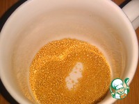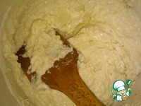 Перемешать, добавить остальную воду. Снова перемешать до однородности. Тесто довольно жидкое, это нормально. |